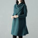 チュニックワンピース50代 春ワンピース 春秋冬 プルオーバー 体型カバー ワンピース 不規則 無地 膝丈ワンピース 通勤 オフィス ハーフハイネック ゆったり