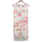 新品同様 LEONARD レオナール カンカン フラワー センタープリーツ チュニック ノースリーブワンピース 2 ピンク グリーン レディース 古着 中古