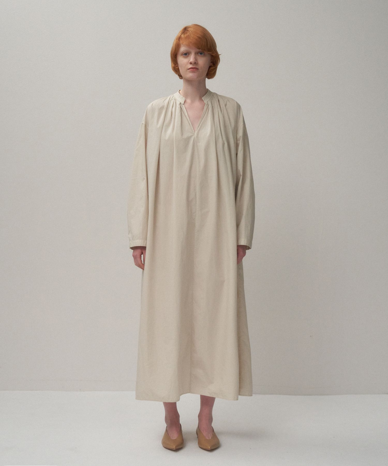 ATON(エイトン)/NATURAL DYED COTTON LAWN | タックロングスリーブドレス