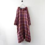 【期間限定価格】美品 定価79200円 2025年 45R フォーティーファイブアール ガーゼ二重織のフリルカラードレス 赤タータンチェック┃【2400014896930】