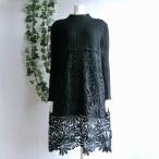 花模様 クロシェ ニット チュニック ワンピース 黒 冬 春 ボトルネック リブニット レディース 上品 50代 60代 70代 新品 a079 ML