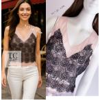 シャネル トップス CHANEL ピンク ブラック カメリア レース コットン カール・ラガーフェルド作品 超美品 38