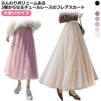 スカート ウエストゴム ボリュームのある プリーツ 裏地あり チュール レース 3層 ボリュームのある 韓国 大きいサイズ ロング丈 原宿系 ハイウエ