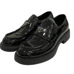 未使用品△PRADA プラダ 1D246M チョコレート トライアングルロゴ パテントレザー ローファー ブラック 34.5 箱・保存袋付 定価169400円