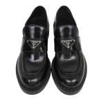 プラダ PRADA トライアングルロゴ チョコレート ブラッシュドレザー ローファー 靴 シューズ レディース レザー ブラック 黒 #36 1D246M