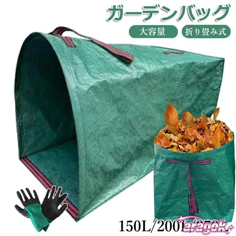 【全品2点で5%OFF】ガーデンバッグ 大容量 麻袋 ちりとり集草バッグ ガーデンバケツ 収穫袋 150L 200L 270L 収穫バッグ 収草袋 落ち葉入れ 折り畳み|省スペースで整理整頓に