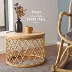 サイドテーブル 木製 丸テーブル 無垢 カフェテーブル おしゃれ コーヒーテーブル 北欧 ソファーサイドテーブル 40cm幅 ラタン 籐 アジアン カゴメ編み