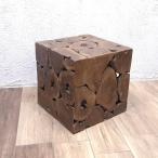 チーク キューブ型 木製 ブロックスツール マホガニー色