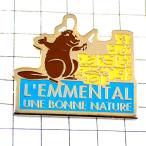ピンバッジ・ビーバーとチーズ種類エメンタールの煉瓦の壁 EMMENTAL FRANCE◆フランス限定ピンズ◆レアなヴィンテージものピンバッチ