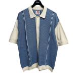 サノバチーズ SON OF THE CHEESE 25SS Riplay Knit ニット半袖シャツ SC2510-KN03 ホワイト×ブルー サイズ