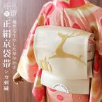 [ 正絹 ]京袋帯 シカ 刺繍( オフシロ 3TKO-4 )生成り 鹿 帯単品 京袋名古屋帯 なごや帯 お太鼓柄 日本製 silk tsumori chisato ツモリチサト