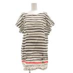 ツモリチサト TSUMORI CHISATO Tシャツ M ブラウン 白 ホワイト ピンク ストライプ柄 足跡柄 半袖 /SX ■GY61 レディース