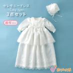 新生児 赤ちゃん用 ベビーセレモニードレス お帽子付き3点セット 日本製 オーガニックコットン クラシカルレース 兼用ドレス