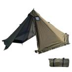 軍幕テント ワンポールテント インナーテント付き フルセットソロテント 1-2人用 タープ ティピテント スカート付 ツーリングテント 軽量 煙突穴付き