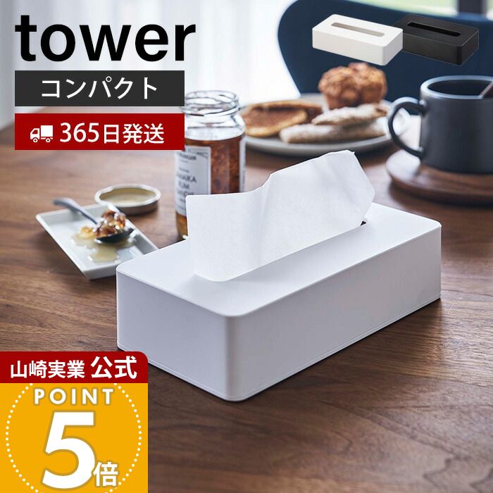 tower 山崎実業 コンパクトティッシュケース タワー インテリア 公式 ホワイト/ブラック 5092 5093 送料無料 壁掛け ティッシュボックス ソフトパック