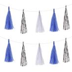 uxcell ティッシュペーパータッセル タッセル ガーランド バナー ロープ付き ダークブルー ホワイト シルバー 30個入り