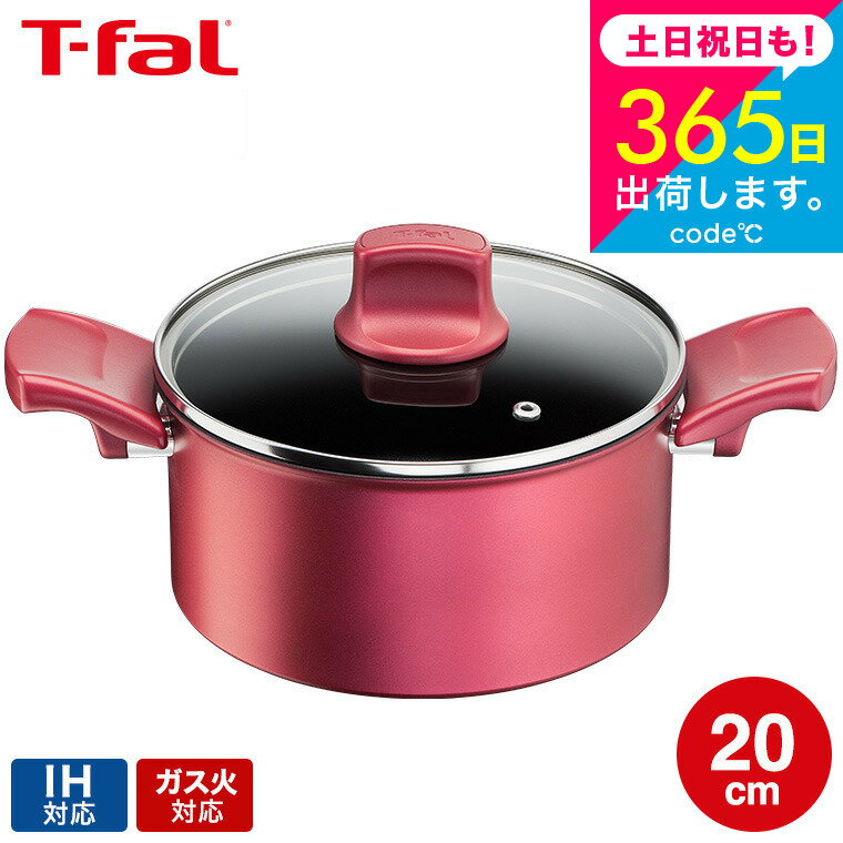 【10/15(水)限定! 抽選で最大100%ポイントバック!】【送料無料】 T-FAL ティファール IH ルージュ・アンリミテッド シチューポット 20cm G26244 (IH対応)【取っ手付き 両手鍋 IH ガス火 直火 深型 ふっ素樹脂加工 お知らせマーク チタン キッチン プレゼント】