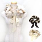 ラクーン ファー リボン付 マフラー ティペット タヌキ レディース ギフト プレゼント ベージュ ブラウン