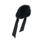 HERMES◆タグ汚れ有/フォックスファー/ティペット/ストール/ファー/BLK/無地/レディース/中古