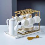 ティーカップセット 6客+ソーサー+カップホルダー付 高級磁器 ティーポット付き