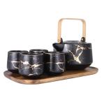 【並行輸入品】Handmade Ceramic Teapot Set 6 PCS Japanese Sake Cup Tea Set Marb