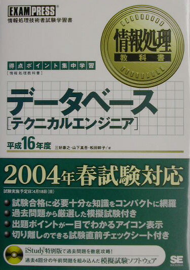 【中古】 データベース「テクニカルエンジニア」 得点ポイント集中学習 平成16年度 / 三好 康之, 山下 真吾, 松田 幹子 / 翔泳社 [単行本]【ネコポス発送】