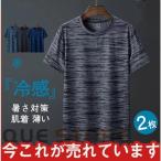 インナー メンズtシャツ 夏用インナー 薄い 軽量 ゆったり 暑さ対策 吸汗 冷感 接触冷感 2枚組 運動着 体育祭 筋トレ 定番