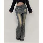 ジーンズ デニム デニムパンツ 2color/レイヤードデザイン フレアデニムパンツ レディース