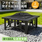 大型焚き火台 ファイヤーピット 二次燃焼構造 BBQコンロ ワイド焼き網 8〜12人用 防錆・防水 パウダー塗装 テーブル付き アウトドア キャンプ