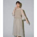 ドレス プリーツフレアースリーブワンピース