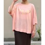 ニット セーター 箔ロゴプリント天竺ニットトップス レディース