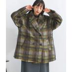 ジャケット テーラードジャケット リブカラーシャギーチェックコート レディース