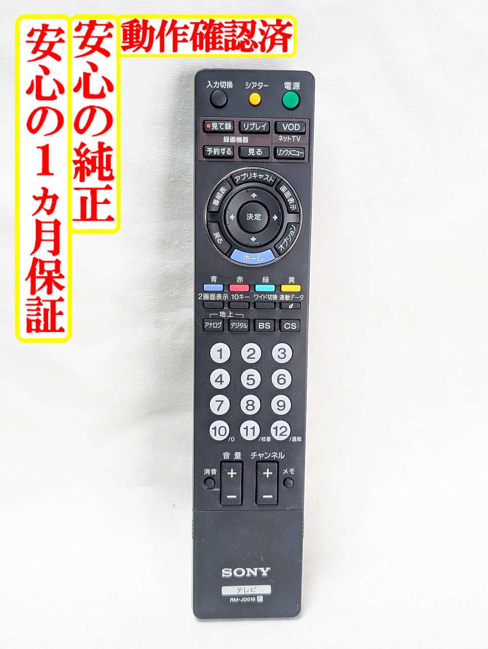 【中古】即日発送 除菌済 RM-JD016 ソニー BRAVIA テレビ リモコン (KDL-20J1 KDL-26J1 KDL-19J5 KDL-22J5 KDL-26J5 KDL-32J5 対応) (148061513) 長期保証