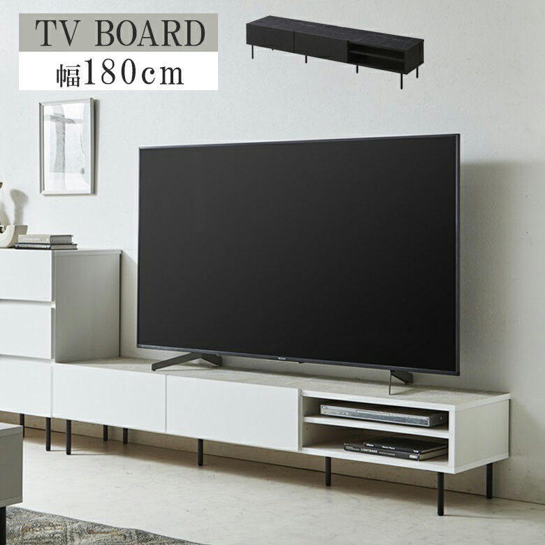 【全商品に使える10%offクーポンあり!!】 テレビ台 ローボード テレビボード 幅180cm 幅180 国産 脚付き 北欧 シンプル モダン おしゃれ 石目調 リビングボード リビング収納 可動棚 引き出し収納 引出し スチール脚 日本製 リモコン操作可能 フルオープン