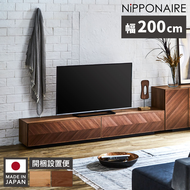 \全商品に使える11%offクーポンあり/ テレビ台 完成品 ローボード テレビボード 幅200cm おしゃれ 収納 国産 日本製 矢張り ロータイプ 北欧 高級感 200 オーク ナチュラル ウォールナット ブラウン リビングボード 引き出し 選べる2色 木製 ヘリンボーン