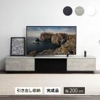 テレビ台 テレビボード 開梱設置付き 幅 200 cm 完成品 セラミック調 石目柄 ローボード おしゃれ 200cm 幅 リビングボード リモコン操作 収納 ブラック グレー