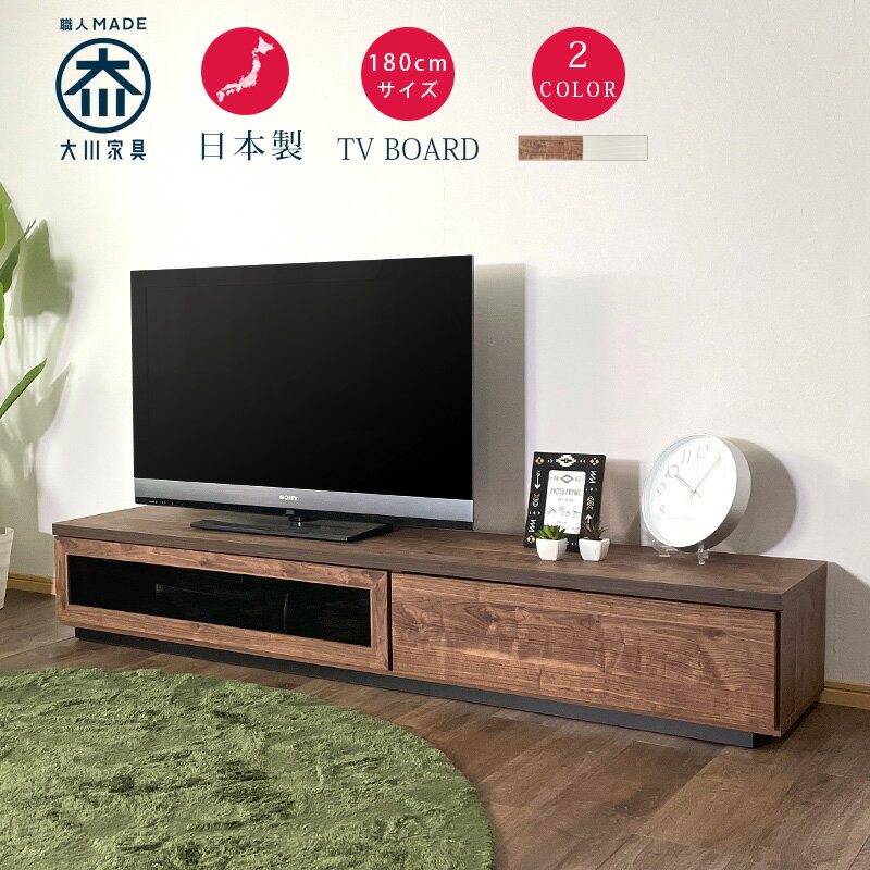 【全商品に使える2%offクーポンあり!!】 テレビ台 ローボード おしゃれ 幅180 収納 リビング収納 引き出し収納 リビングボード 白 180 ガラス ホワイト ブラウン ダークブラウン 北欧 国産 日本製 スライドレール 木製 大川家具 木製収納 ブラックガラス