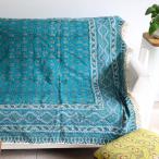 ペルシャ更紗 イラン手染め布 196x132cm アンティークデザイン ブルーグリーン テーブルクロス ソファカバー