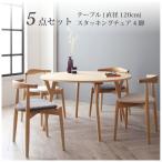 ダイニングセット(テーブル&チェア) 北欧デザイナーズダイニングセット 4人 5点セット(テーブル+チェア4脚) スタッキングチェア W150