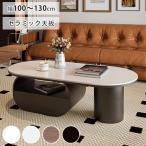 10%OFF期間限定★レビュー特典・センターテーブル 北欧 ローテーブル セラミック テーブル 大理石柄 幅100 120 130cm リビングテーブル 収納付き 楕円形 台形