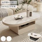 期間限定セール★センターテーブル ローテーブル リビング おしゃれ 大理石調 木目調 セラミック テーブル 収納 引き出し付き 収納棚 幅100 120 130cm 楕円形