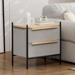 サイドテーブル 引き出し付き ナイトテーブル 低め ベッドサイドテーブル 2段チェスト タンス 収納 布製 MDM(グレー, Large)