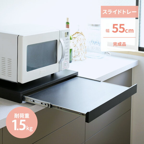 【スーパーSALE限定 10%OFF】 スライドトレー キッチン レンジ下 トレー スライドテーブル 引き出し レンジ台 レンジ置き オーブントースター 炊飯器 収納 省スペース ブラック 2512ss