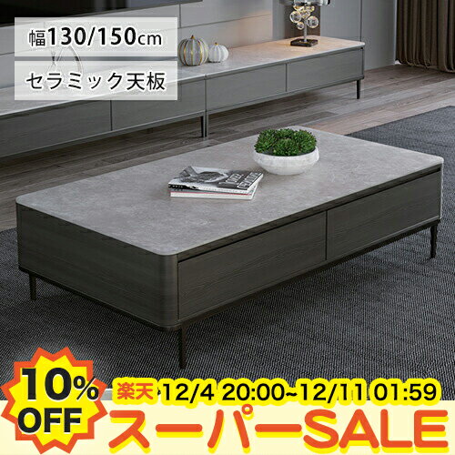 【10%OFF★楽天スーパーSALE】センターテーブル 北欧 ローテーブル セラミック テーブル 幅130cm 150cm リビングテーブル サイドテーブル 引き出し収納付き 長方形 机 台形 モダン シンプル エレガント おしゃれ お洒落 ホワイト グレー 新生活