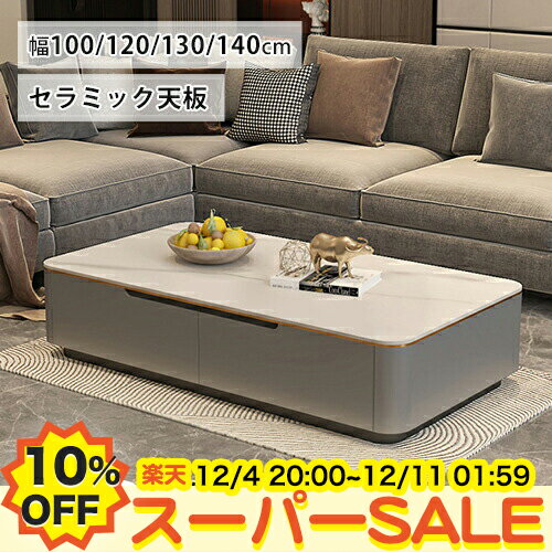 【10%OFF★楽天スーパーSALE】セラミック センターテーブル ローテーブル 大理石柄 収納付きコーヒー カフェテーブル リビングテーブル 食事 長方形 ホワイト 幅100 120 130 140cm 引き出し付 石目調 高級 モダン 北欧 韓国インテリア おしゃれ ホテル 在宅ワーク 新生活