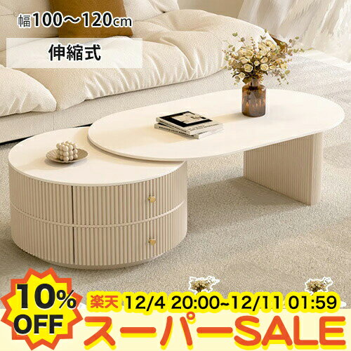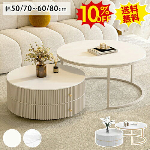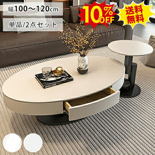 【10%OFF★楽天スーパーSALE】センターテーブル ネストテーブル 2個セット ローテーブル ソファサイド セラミックテーブル 組み合わせ 幅60 100 120cm 伸縮 丸型 楕円 北欧 リビング 引き出し収納付き コンパクト ワイド 一人暮らし 汚れや傷に強い ホワイト ブラック