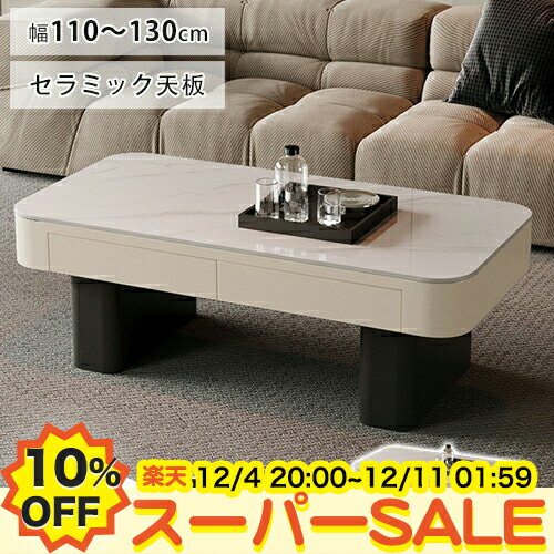 【10%OFF★楽天スーパーSALE】センターテーブル セラミック ローテーブル 大理石柄 収納付き 120cm リビングテーブル 白 長方形 100cm コーヒー カフェテーブル 黒 130cm ホワイト かわいい ベージュ 机 台形 引き出し モダン エレガント おしゃれ 北欧 ブラック 新生活