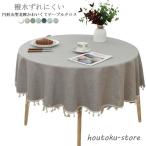 円形 テーブルクロス 撥水加工 マルチクロス タッセル 綿麻生地 北欧 通気性 テーブルマット テーブルカバー 丸 はっ水 拭くだけ 汚れ防止 植物柄 耐熱