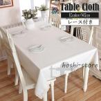 テーブルクロス テーブルカバー 綿麻 テーブルマット レース付き 厚手 無地 ホワイト 汚れ防止 加 家庭用 業務用 サイズオーダー可能