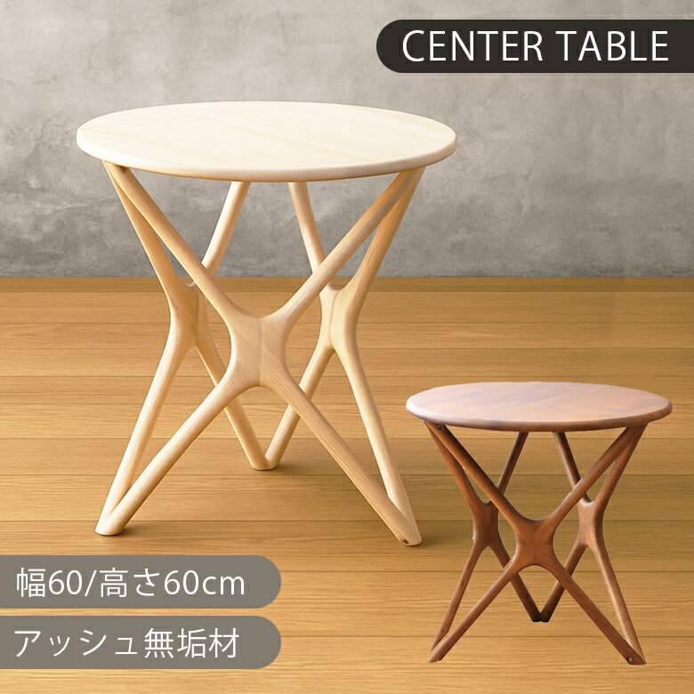【12/4 20:00から使える★4h限定5%offクーポン配布中】 センターテーブル 円形 丸テーブル 幅60cm おしゃれ アッシュ無垢 リビングテーブル モダン シンプル リビング テーブル 60cm幅 おしゃれ アッシュ材 円形テーブル 木目 ブラウン ホワイト